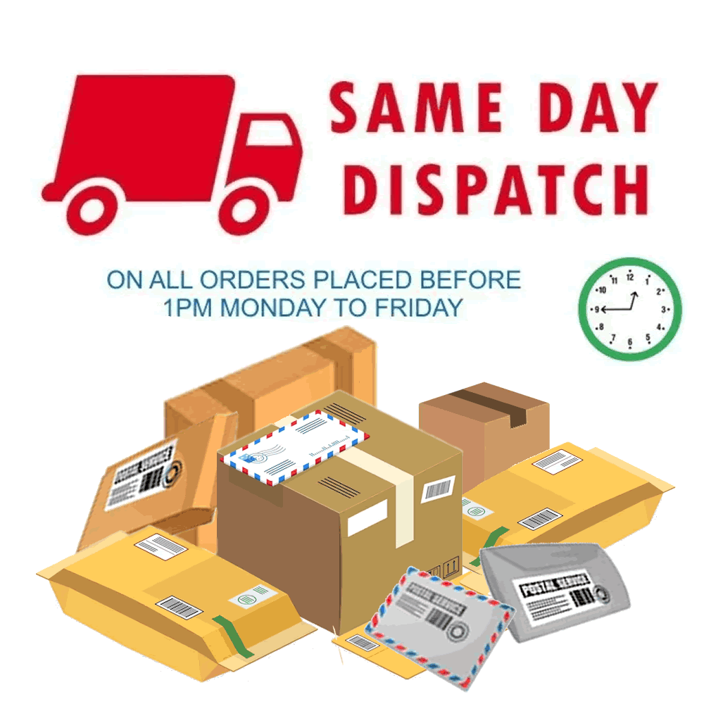 All orders are dispatched same day Monday-Friday if purchase before 1pm of that working day,