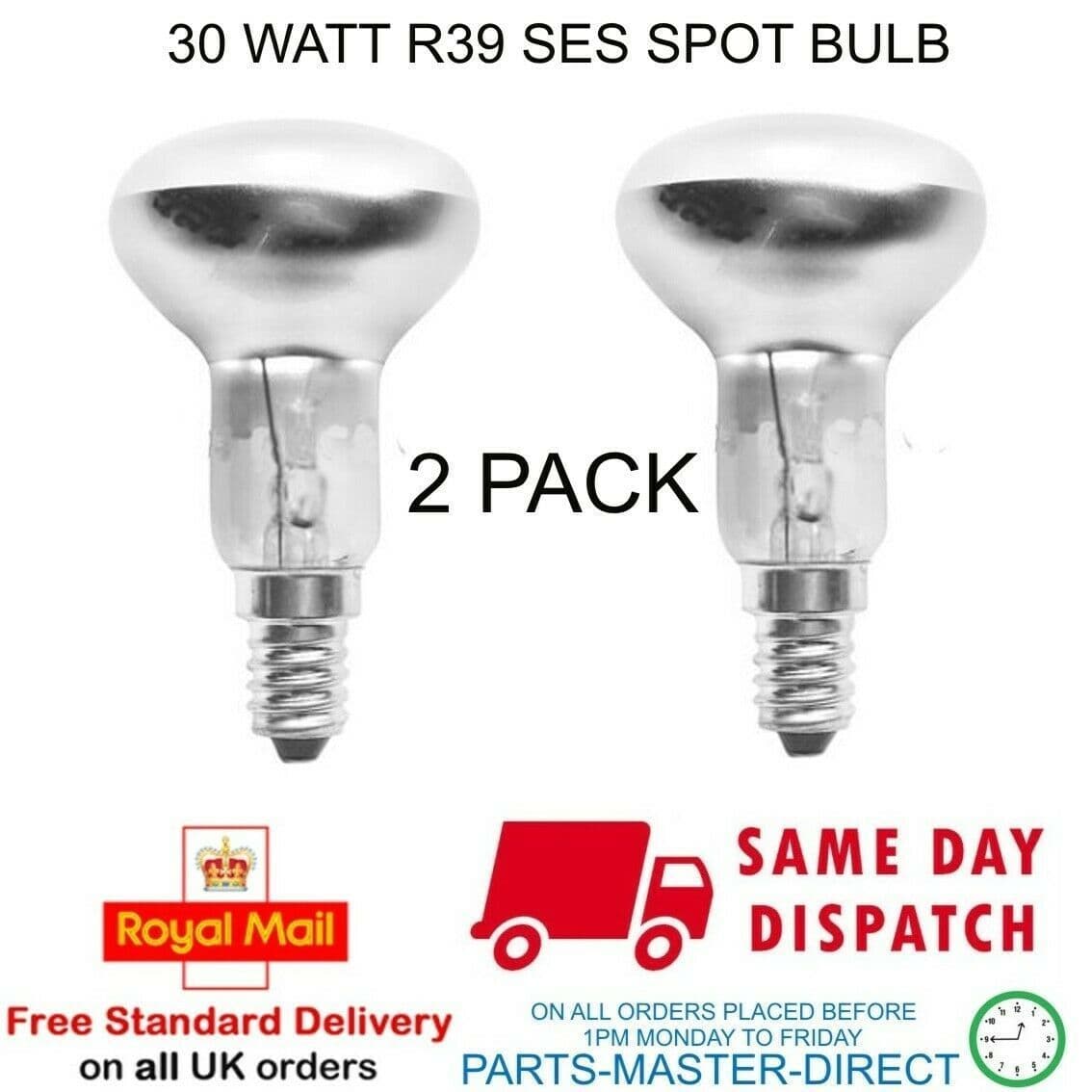 Wellco 30 Watt Light Bulb R39 Ses E14 Base Dimmable Reflector Spot Lamp - 2 Pack